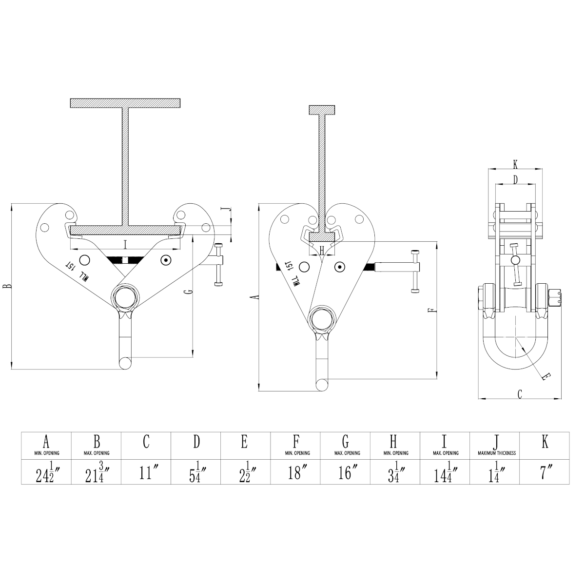 Our steel lifting beam clamps are for commercial and industrial use . Product is adjustable to fit a wide range of beam widths. Designed to provide positive centering of the load underneath.