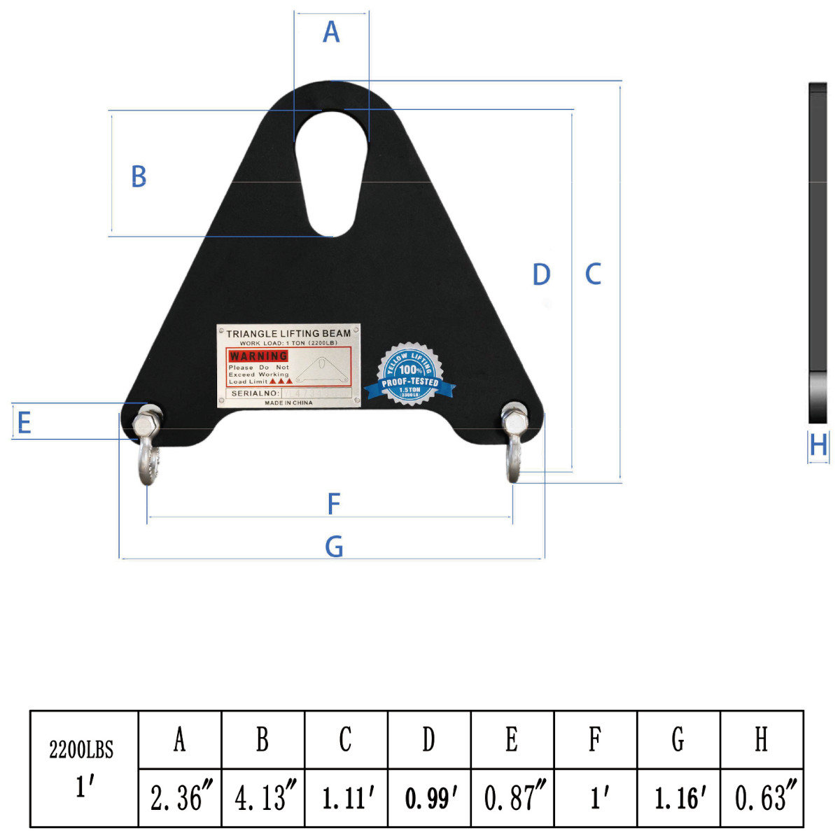 1T x 1FT Triangle Steel Lifting Beam w/ Shackle