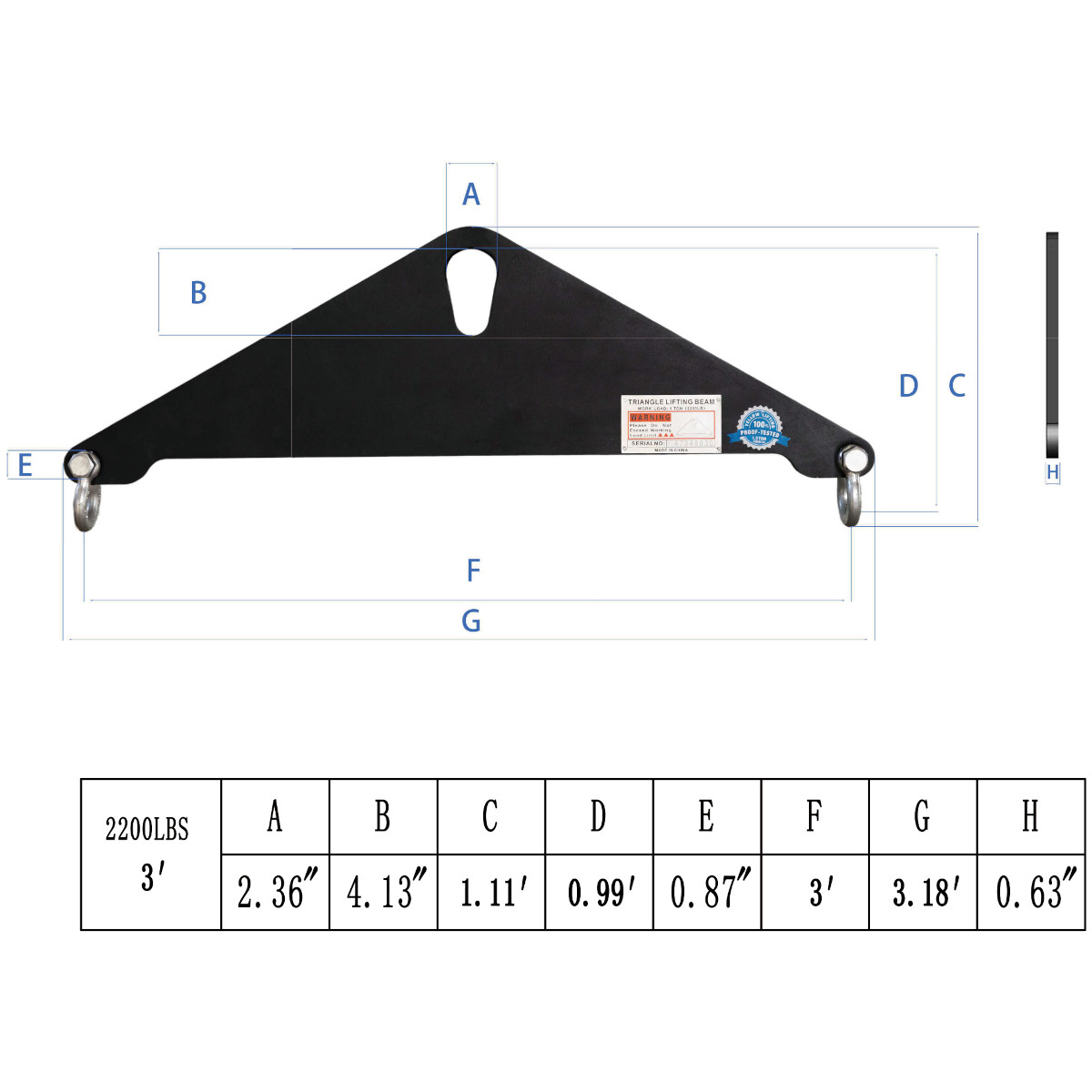 1T x 3FT Triangle Steel Lifting Beam w/ Shackle