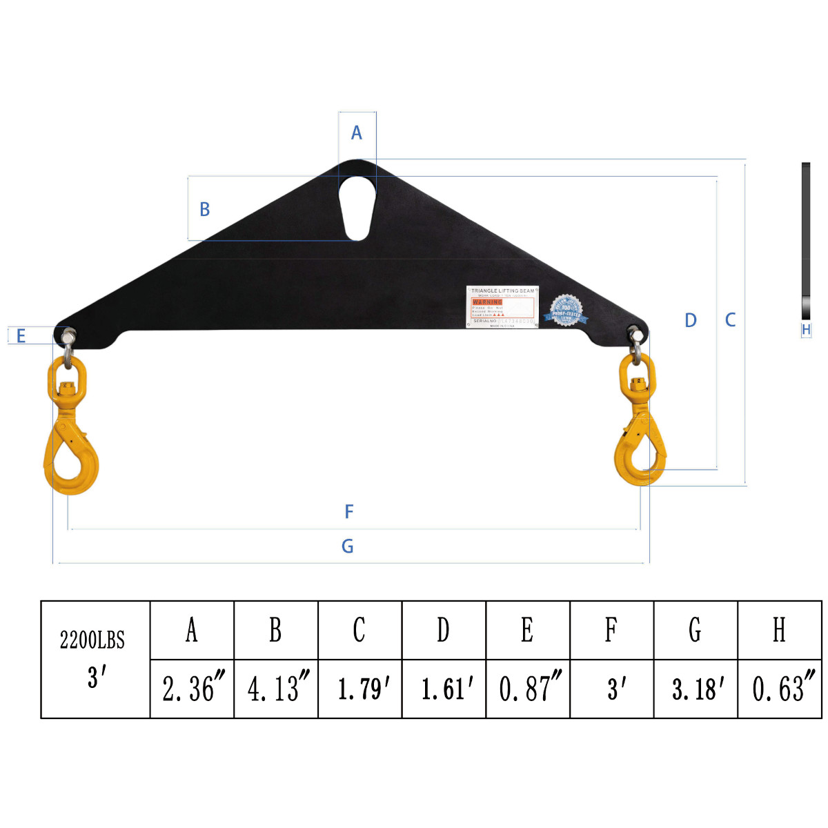 1T x 3FT Triangle Steel Lifting Beam w/Shackle and Swivel Hook