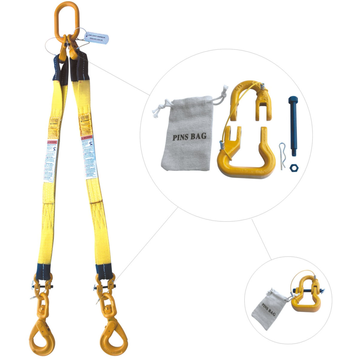 2" x 10'  Nylon Bridle Sling 2 PLY Double Leg with Swivel Self Locking Hoook