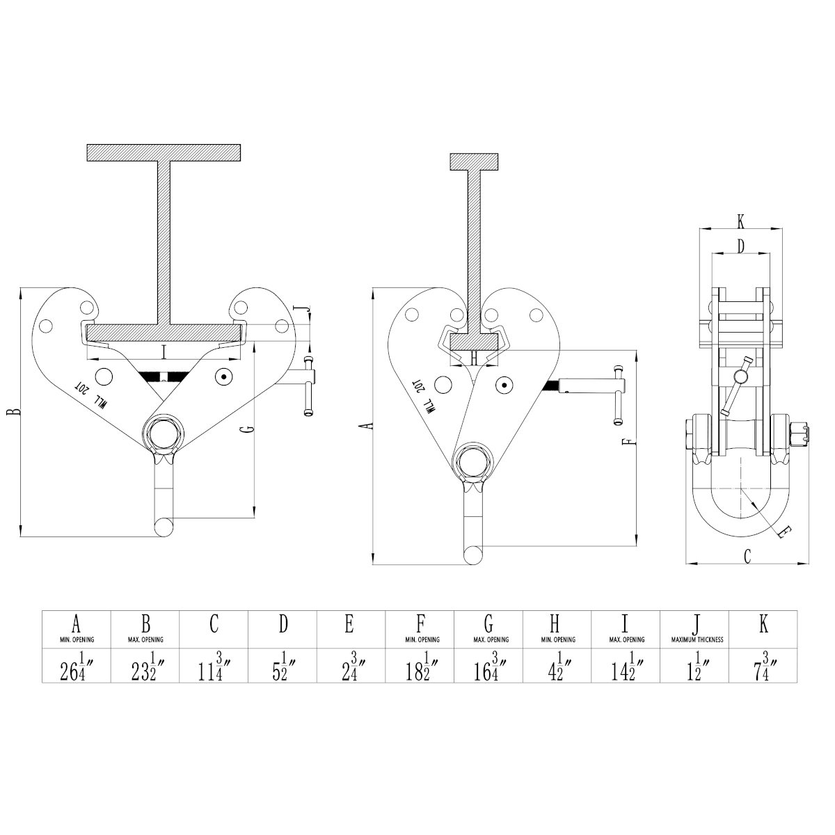 Our steel lifting beam clamps are for commercial and industrial use . Product is adjustable to fit a wide range of beam widths. Designed to provide positive centering of the load underneath.