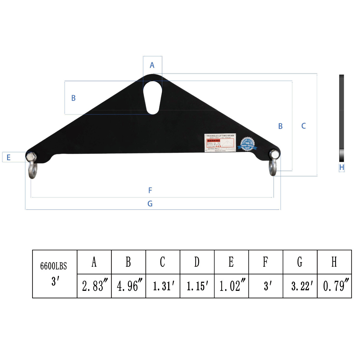 • 3T x 3FT Triangle Steel Lifting Beam w/ Shackle