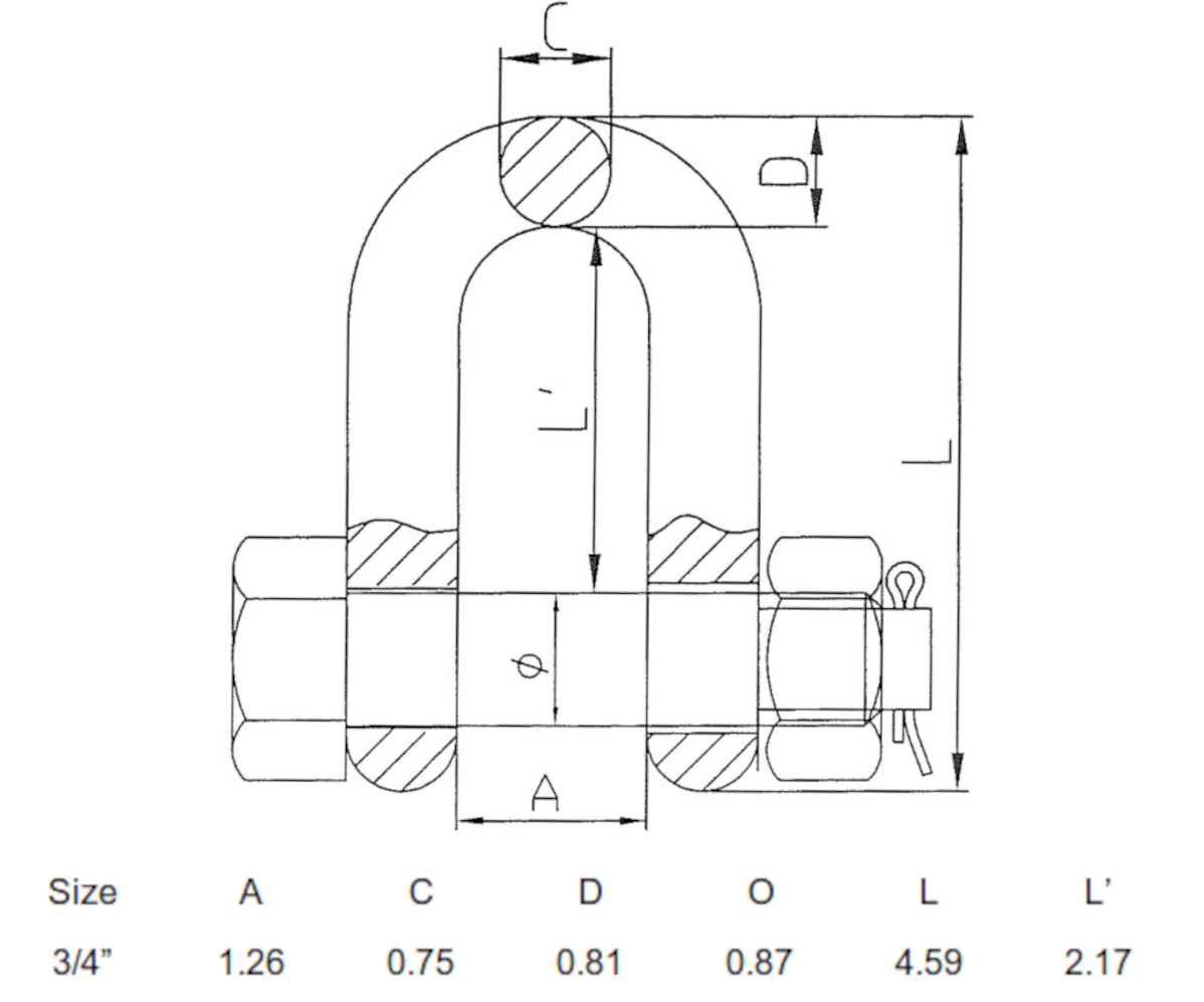 3/4" Grade 80 HDG Alloy Safety D Shackle Clevis Bolt Nut Type
